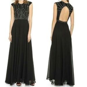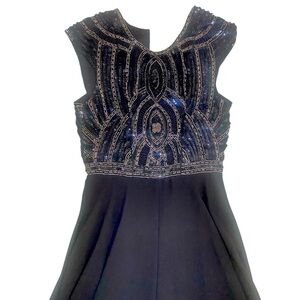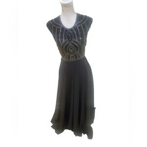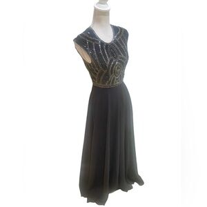 Parker sequin/beaded & chiffon black & gold sleeveless gown. Lined. Crew neck. Back zip. Open back. Wore once. Euc