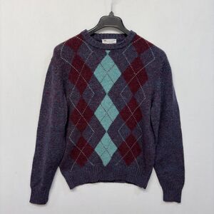 Parker of Vienna Men 100% Shetland Wool Sweater Size Large Argyle C046 -4