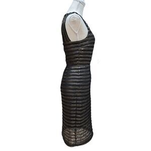 Parker Black & Gold BodyCon Form Fitting Midi Dress Size S