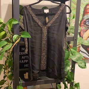 Parker Black NEW Blouse Embroidery Silver Stars XS