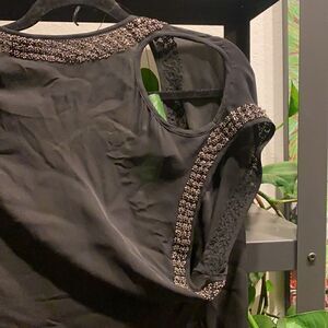 Parker Black NEW Blouse Embroidery Silver Stars XS- Open Shoulder
