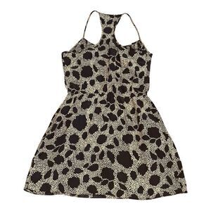 Parker Black and Tan Printed Silk Ruffle Dress Size Small