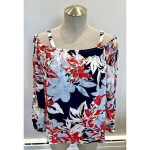 Parker Cold Shoulder Floral Top in Blue/Red Size M