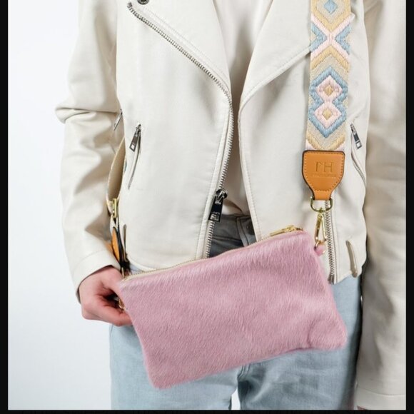 Parker&Hyde Crossbody Blush cowhide purse with strap.