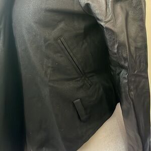 Parker Black Leather Sleeve & Cloth Shawl Torso Crop Jacket