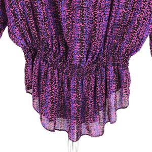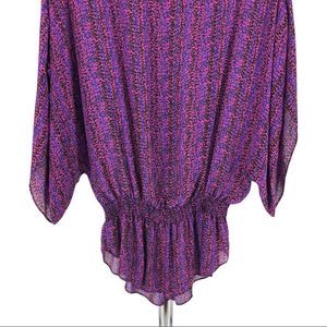 Parker Silk Printed Purple Pink Blouson Smocked Waist Blouse Top