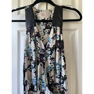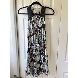 Small sleeveless silk black and pink floral mini wrap dress with leather straps by Parker. Excellent condition.