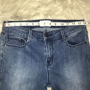 Good, preloved condition. Parker Smith Cropped Skinny Denim Jeans. Medium wash. Slits at the ankle hem. Good stretch. A couple small fabric flaws, as shown.