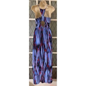 Parker Womens Silk Abstract Print V-Neck Maxi Dress Blue Red Size XS.