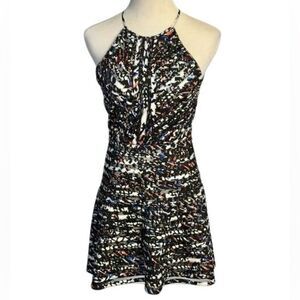 Parker Zulma Halter Fit and Flare Mini Dress in Black/Multi Women’s XS