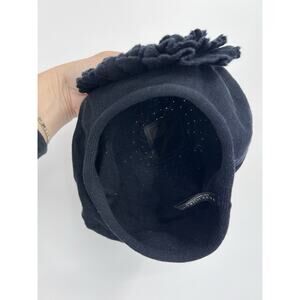 Parkhurst Black Cotton Beret Large Rosette Y2K OS