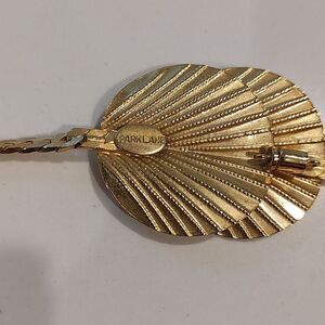 Vintage Parklane Herringbone Chain Fan Closure Front Clasp Goldtone Necklace. This necklace features an easy to put on and to take off front clasp closure. Marked and stamped on the back.