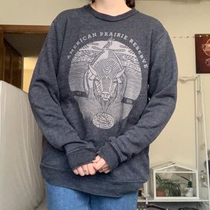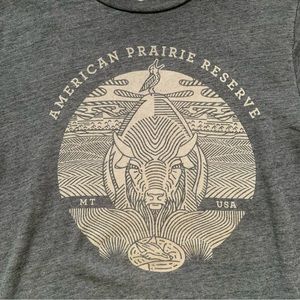 Charcoal grey, super soft, features an “American prairie reserve” Montana graphic, has light wear and pilling. Size S. Message w any questions!