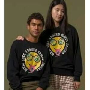 Crafted with a passion for both style and the planet, the Parks Project What Goes Around Comes Around Crewneck Sweatshirt is a sustainable choice for those who value the environment without compromising on fashion. The sweatshirt features a versatile black hue complemented by a vibrant smiley face print, embodying a mix of conservation and preppy themes.