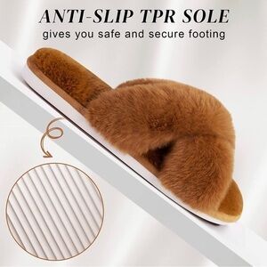 Parlovable Women's Cross Band Slippers Fuzzy Soft House Slippers. Size Large 9/10 New with Tag.