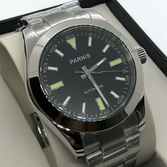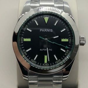 Parnis Black Dial Sapphire Crystal Green Mark Automatic 40mm Watch Brand New