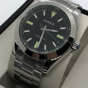 40mm Parnis Automatic Japan Miyota 8215 Automatic Movement Sapphire Crystal Stainless Steel Band Black Dial Green Scales Watch