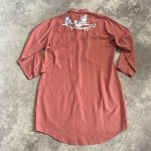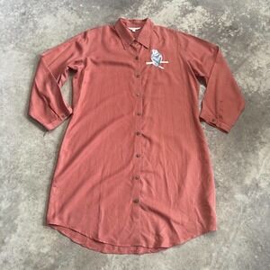 Parory Dress Womens Size 14 Button Front Collared Embroidered Long Sleeve Pink