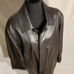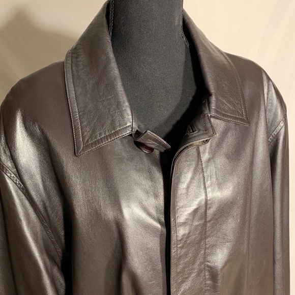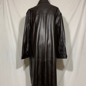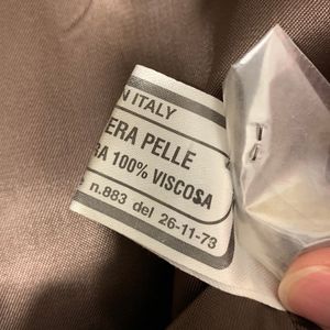 Vintage Italian full-length leather jacket from Parri's in Florence. The outside is genuine leather, and the lining is 100% viscose (like rayon).