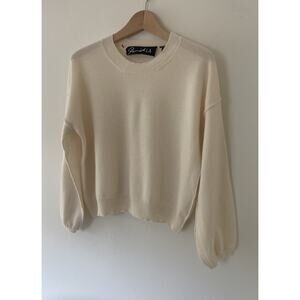 Parrish LA 100% Cashmere Cropped Crewneck Sweater Ivory SIze Medium