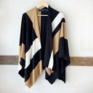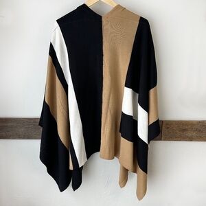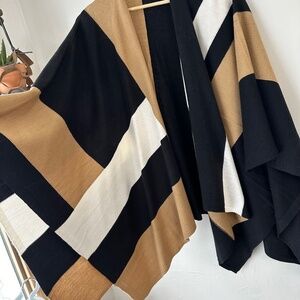 Parrish LA Sweater Poncho Cardigan Wrap Tan Winter White Black Fringe OS