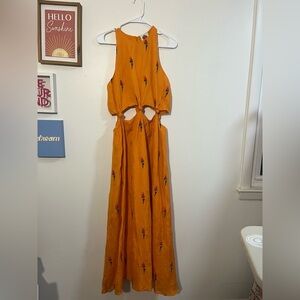 Maxi dress with knotted waist cutouts and allover parrot print