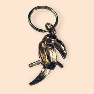 Parrot Keychain Keyring w/ Rhinestones - Exotic Bird Design - Gold-Tone Metal