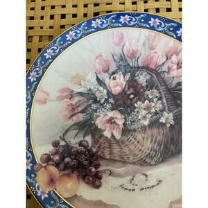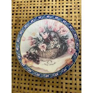 “Parrot Tulips ” Collectors Plate based on an original painting on silk. Plate #17145A in limited edition of “Parrot Tulips ” Lena Lui’s Basket Bouquets.