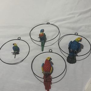 Parrots on their Perch 2 Larger, 2 Small (one small missing its tail)