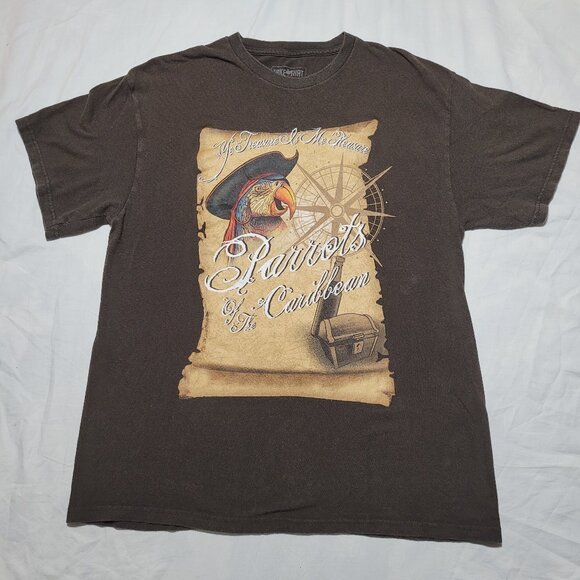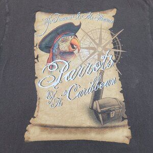 Parrots of the Caribbean Humorous Graphic Cotton T Shirt Pirate's Treasure Large