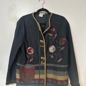 Parsley And Sage Art To Wear Sz M Wool Floral Embroidered Jacket Lagenlook Artsy