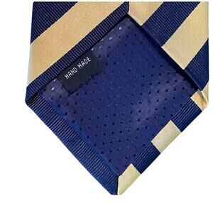 Parsley Luxury Neckwear Yellow Navy Diagonal Striped Silk Tie, 58.5"