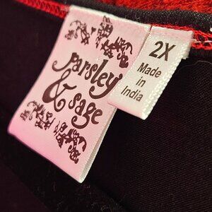 Parsley & Sage 2X Red Black Patchwork Long Sleeve Tunic Top Lagenlook