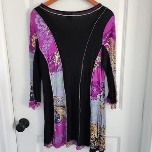 Parsley & Sage Black Multicolor Tunic Blouse Art To Wear Paisley Size L Boho