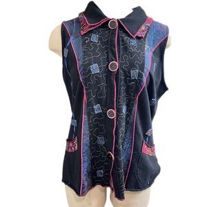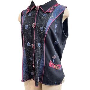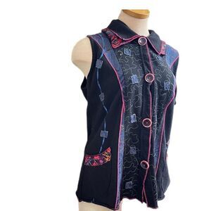Parsley & Sage Embroidered Art To Wear Hippie Boho Lagenlook Vest Size Large