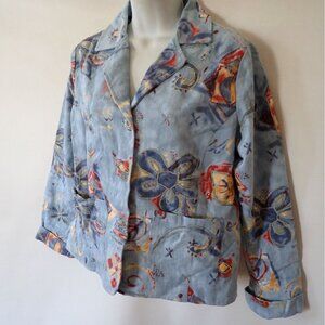 Parsley & Sage Floral Blazer Jacket women S Blue Art To Wear Boho Casual