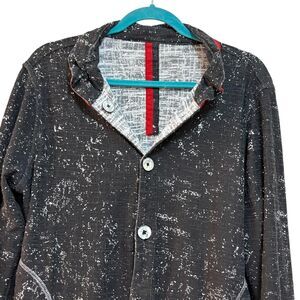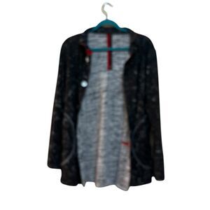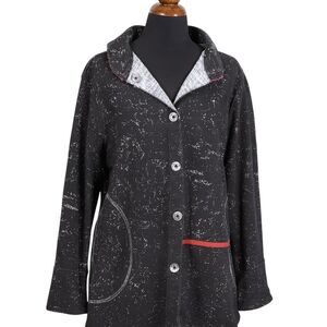 Parsley & Sage Jacket Womens Large Black Gray White Reversible Button Pocket Art