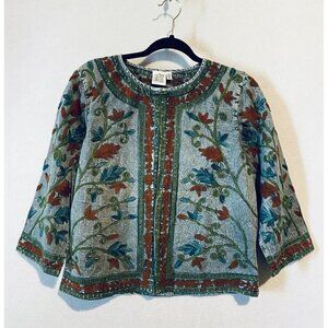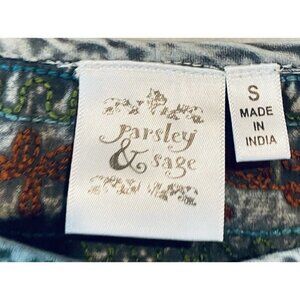 Parsley Sage Jacket Womens Small Floral Embroidered Lightweight Denim Boho