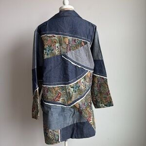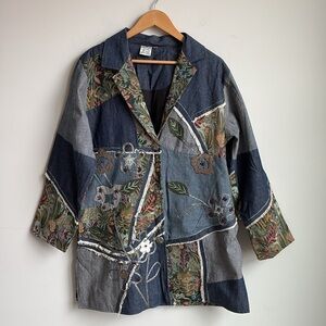 Parsley & Sage Patchwork Denim Jacket – Embroidered Floral Art to Wear XL