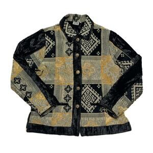 Parsley & Sage Patchwork Jacket Geometric Velour Black Gold Tapestry Women's M