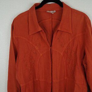 Parsley & Sage Rust Orange Embroidered Button Down Blouse Boho Western Long Slee