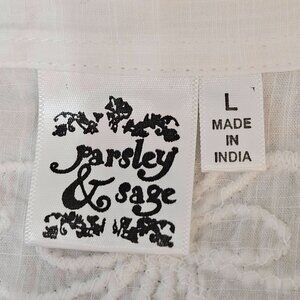 Parsley & Sage Shirt Large White Embroidered Button-Up Indie Asymmetrical Boho