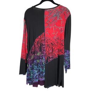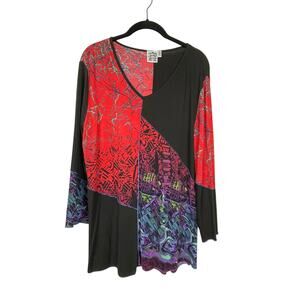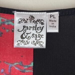 Parsley & Sage Shirt Top Sz Petite PL Art to Wear Abstract Red Black Colorblock