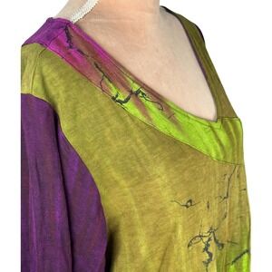 Parsley & Sage Tunic Top 2X Purple Green Tie Dye Patchwork 3/4 Sleeve Artsy