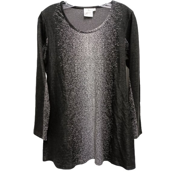 Parsley & Sage Womens A Line Lagenlook Tunic Top Medium Black Printed Artsy