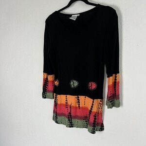 Parsley & Sage Women’s Boho Dip Tie Dye Accent Black Stretch Tunic Blouse Small