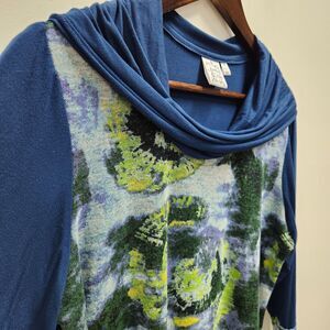 Parsley & Sage Womens Cowl Neck Tunic Size M Tie Dye Mixed Media Artsy Unique
