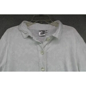 This is a Women's Parsley & Sage White Button-Up Top with 3/4 Belled Sleeves. It is a size XL. Laying flat, it measures: Armpit to armpit-24" and the length is 27.5". It is 100% Cotton and has some texture to the material. It is in good condition.