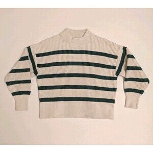 Part Two Copenhagen, cream color Sweater Jumper with Green Stripes. Women's size XS.