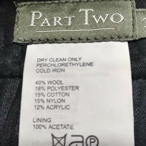 You are Buying a Part Two Men's Size 34 trousers. 40% Wool 18% Polyester 15% Cotton 15% Nylon 12% Acrylic. Solid Flat Front Casual Pants. Black